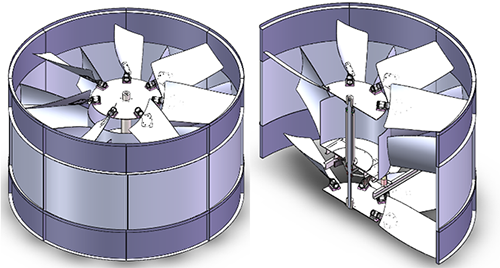 风扇采用铝合金材质,航空级铝合金叶片,轮毂采用五金模具成型,叶片采用不锈钢U型码连接,风扇角度可无级调节,表面经喷涂防腐处理。风量大等优点。而且气动性能好、强度高、耐腐蚀,通过改变叶片安放角度可以满足工艺需要,提高装置效率。该风机最大的优点是突破了传统闭式冷却塔的4片、6片或8片叶片。该技术是在闭式冷却塔上安装多层、多个叶片。常规配置为21片超静音扇叶,可以降低噪音的同时保证足够的排风量。